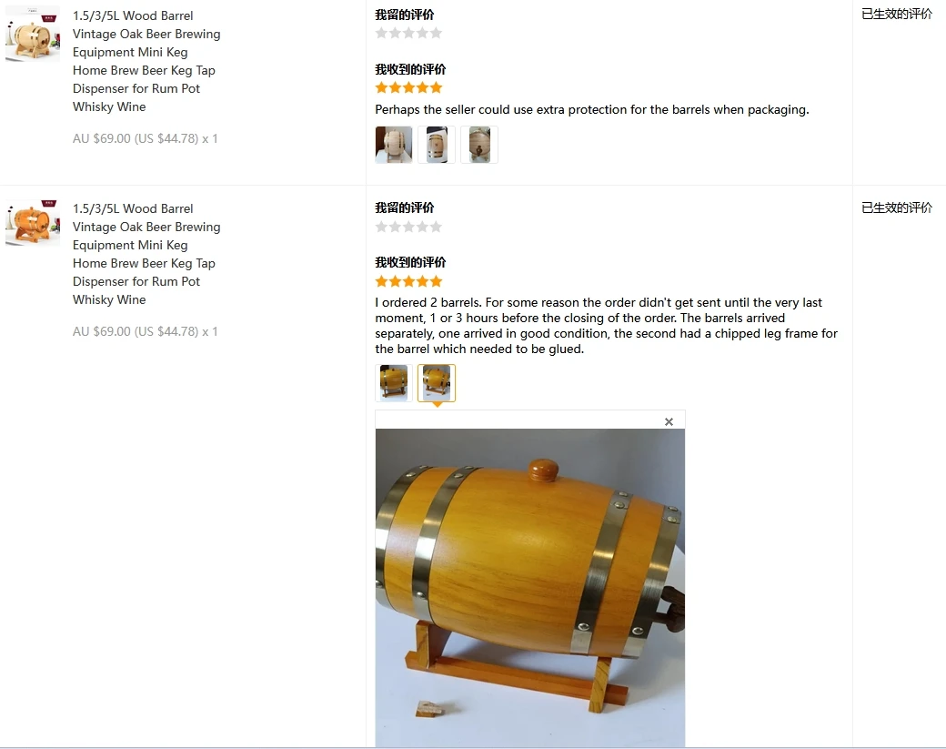 【HOW TO USE】Do not pour wine in the top of the barrel, please take the faucet first, then erect the barrel and pour your wine in the place where the faucet is installed.