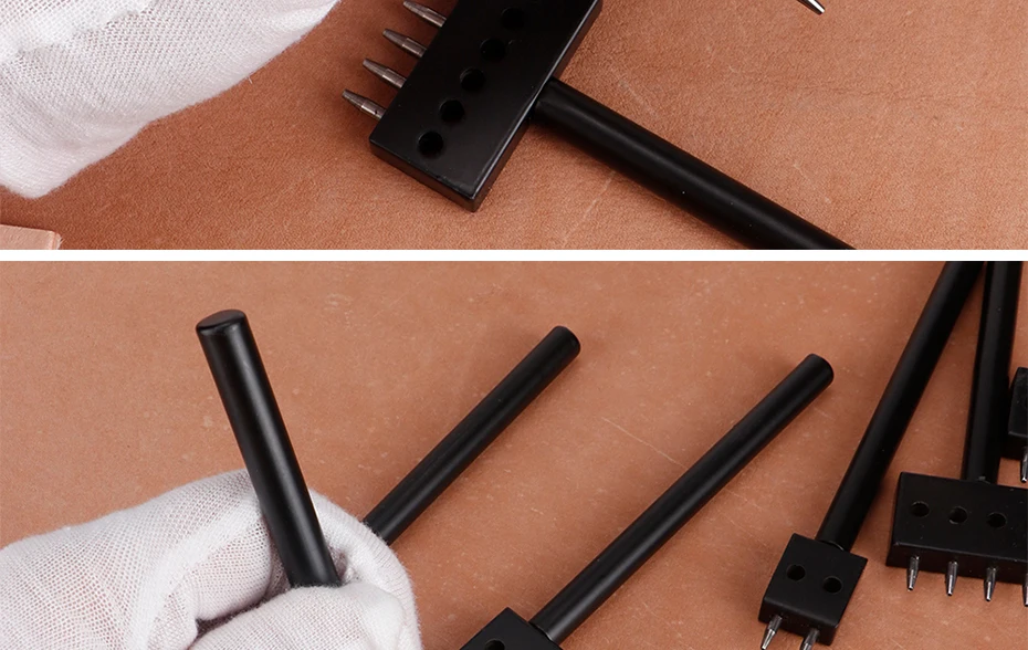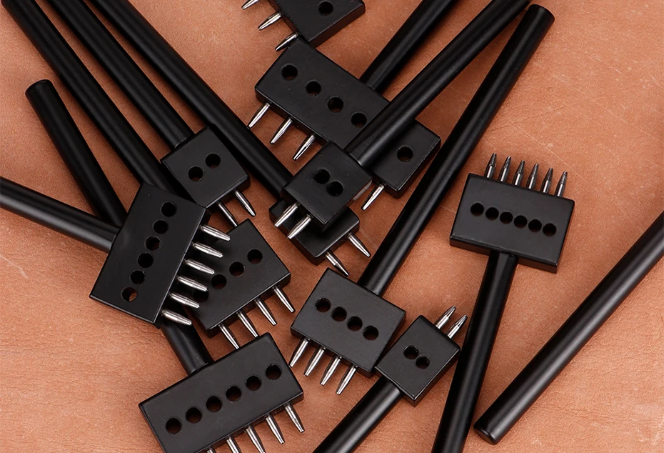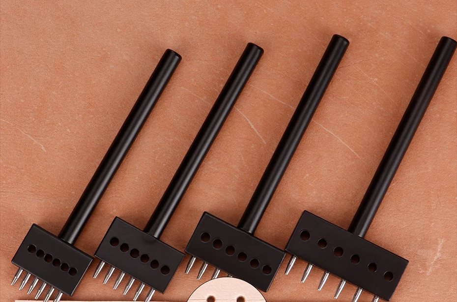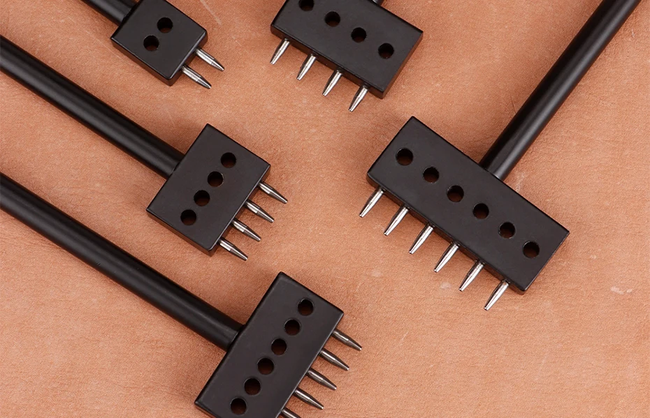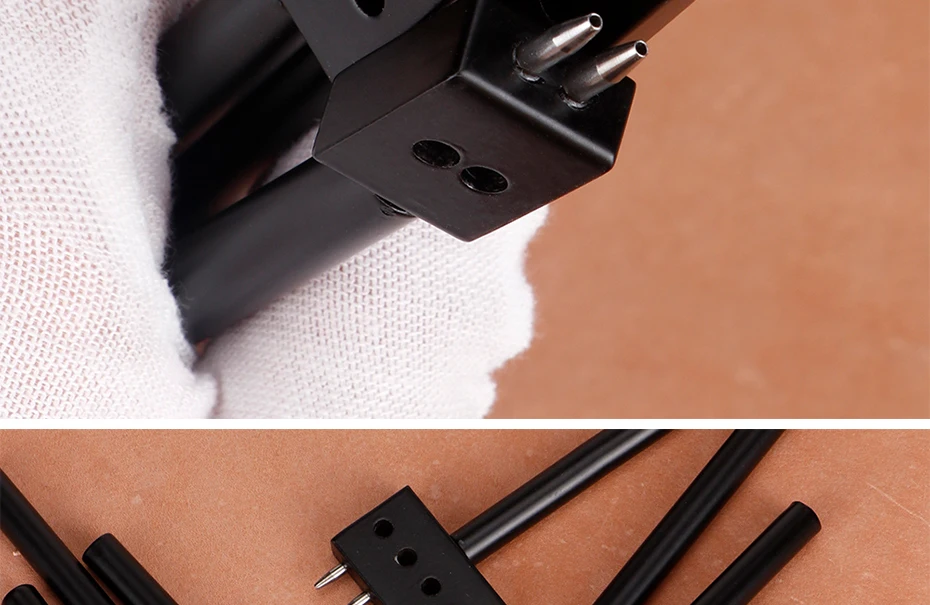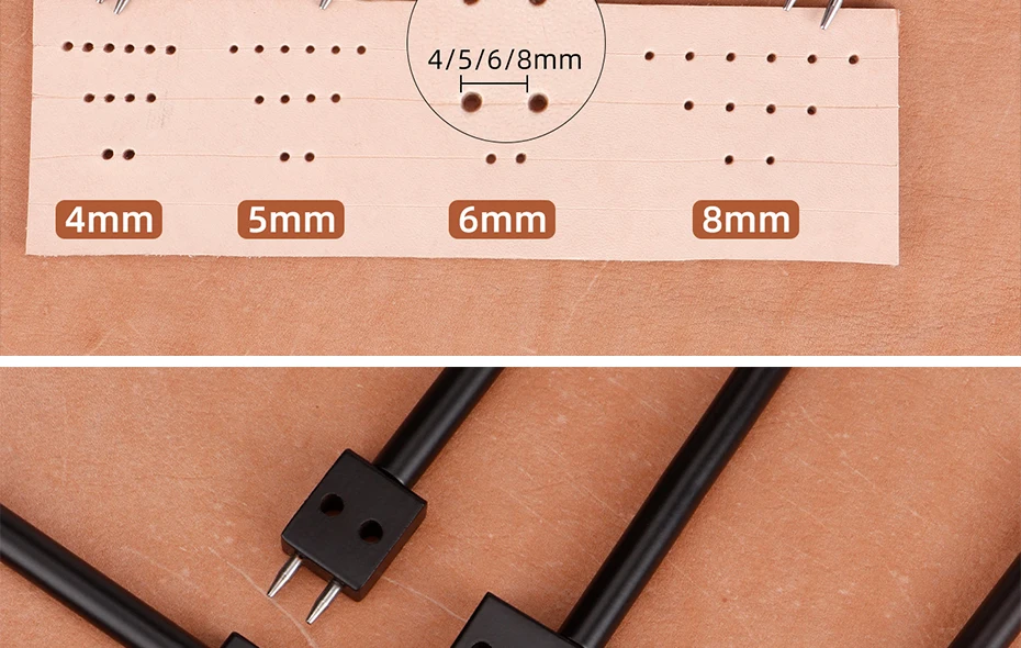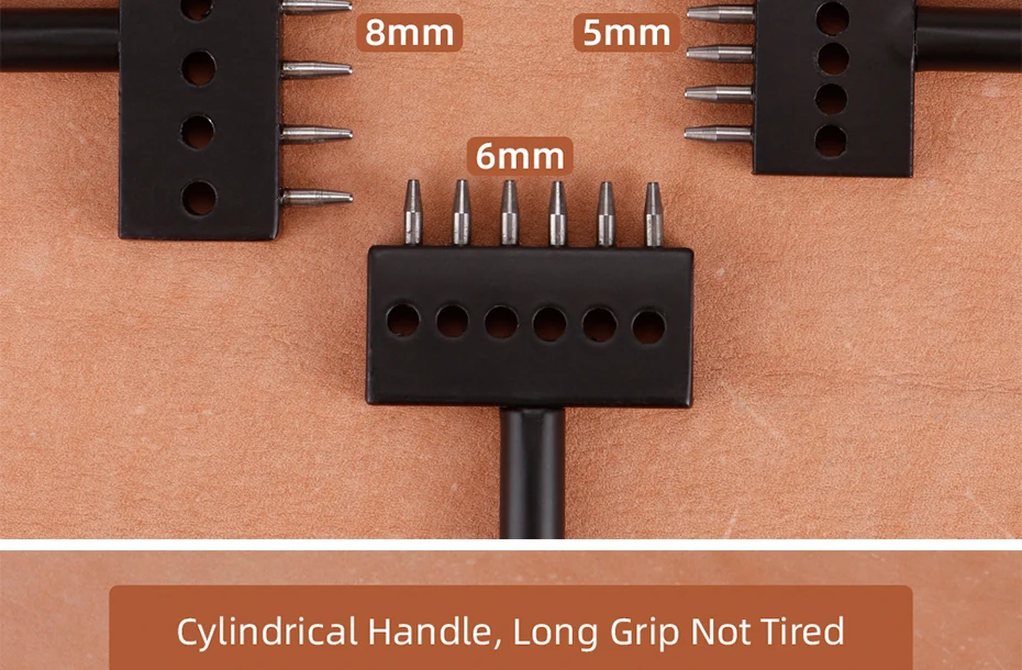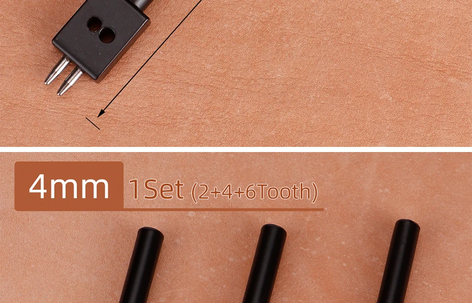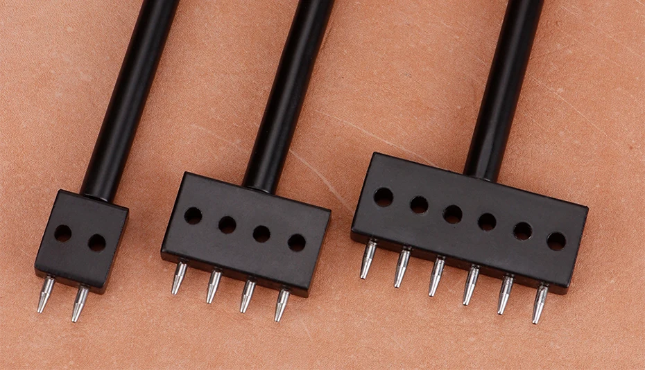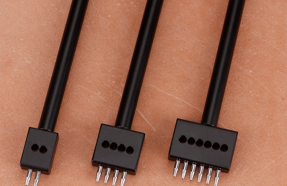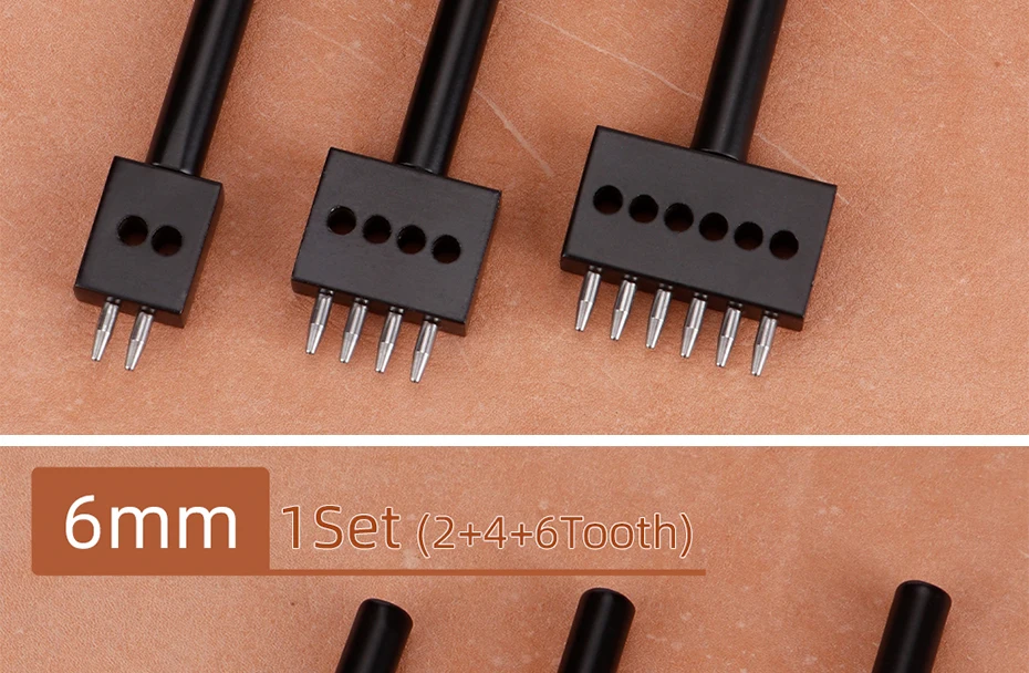 1-Set Leather Round Hollow Stitching Hole Punch Cutter Tool, 4/5/6mm Spacing – 2/4/6 Hole for DIY Belts, Canvas,Paper & Plastics