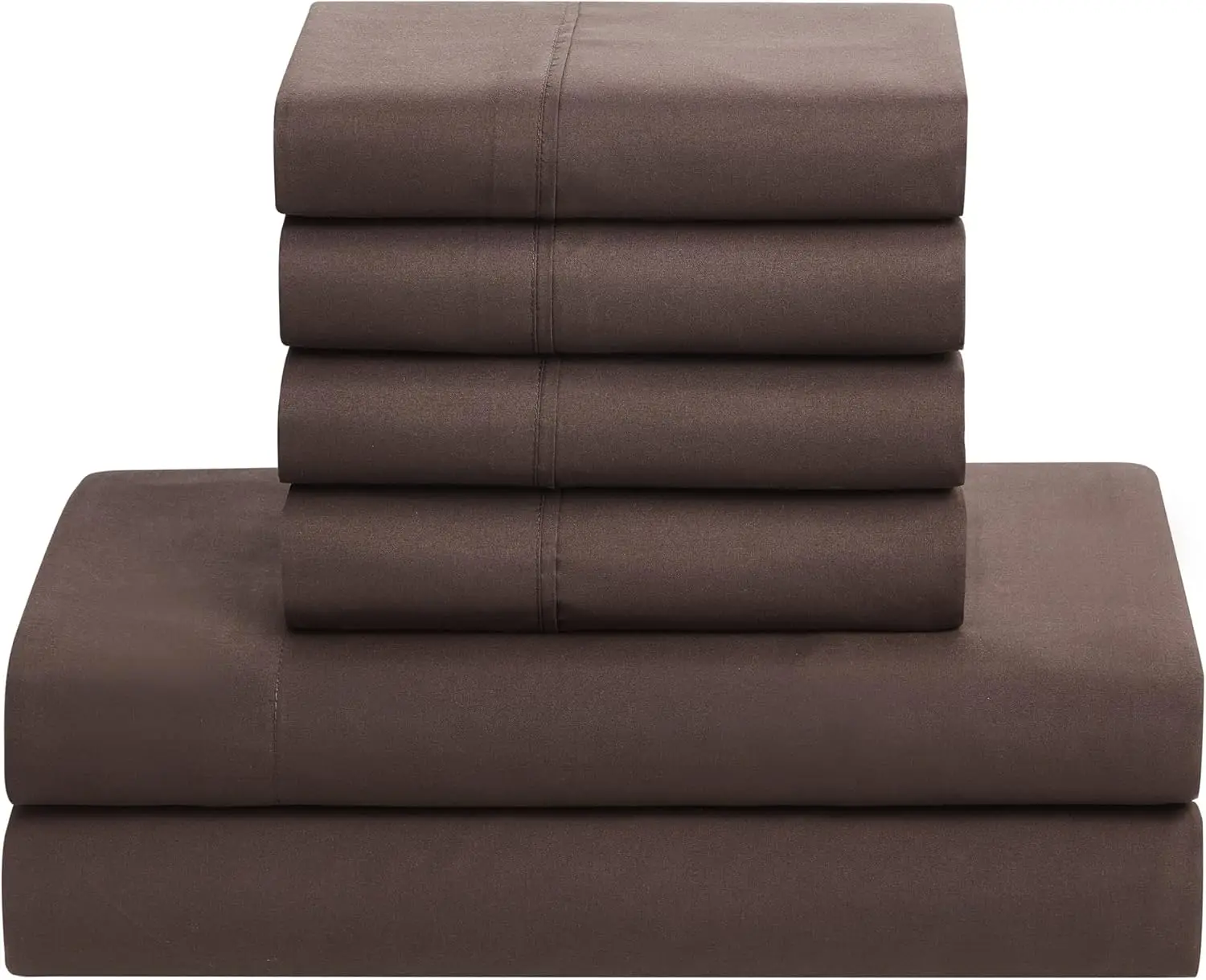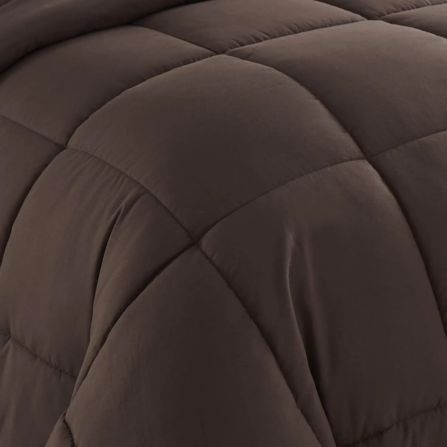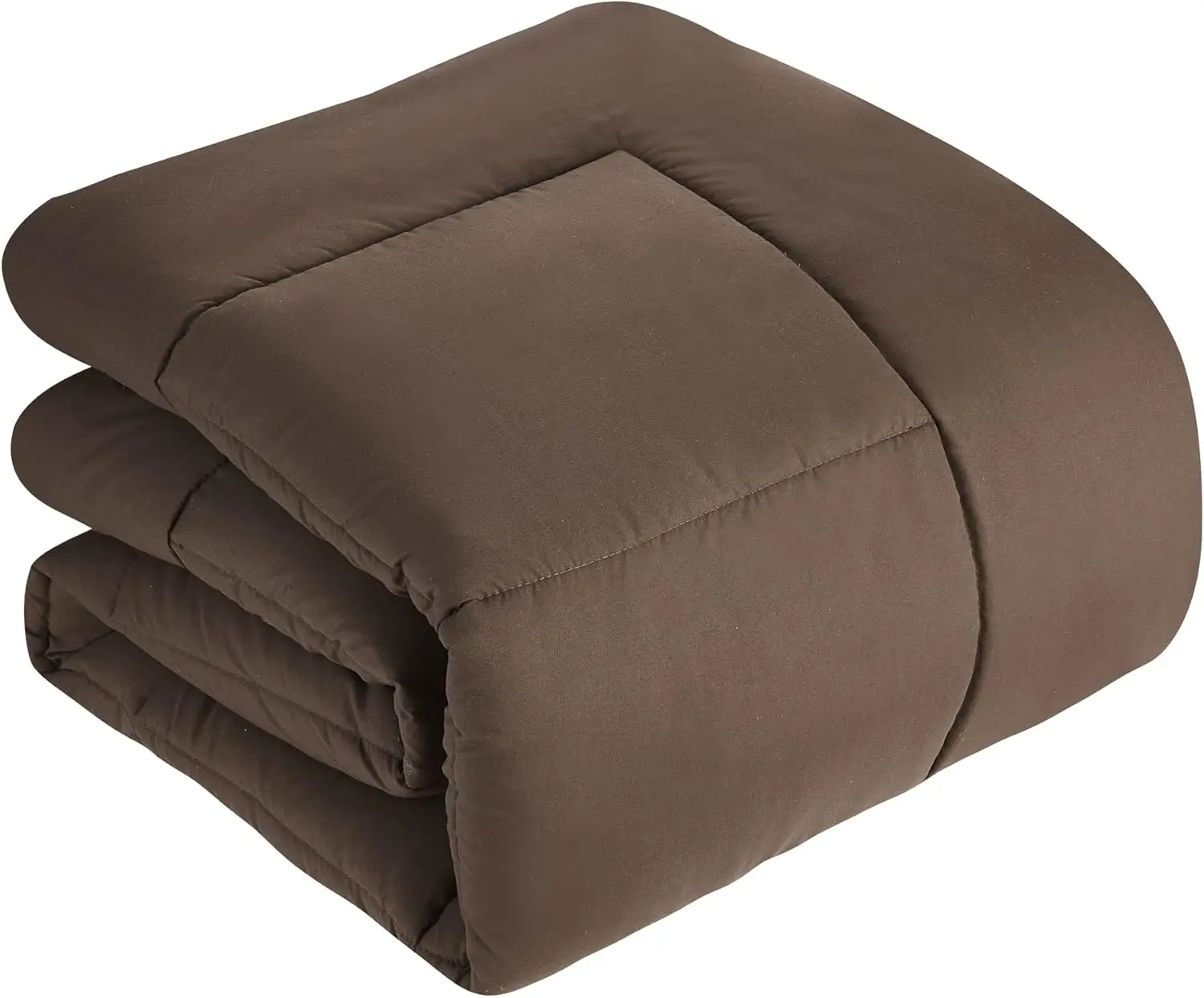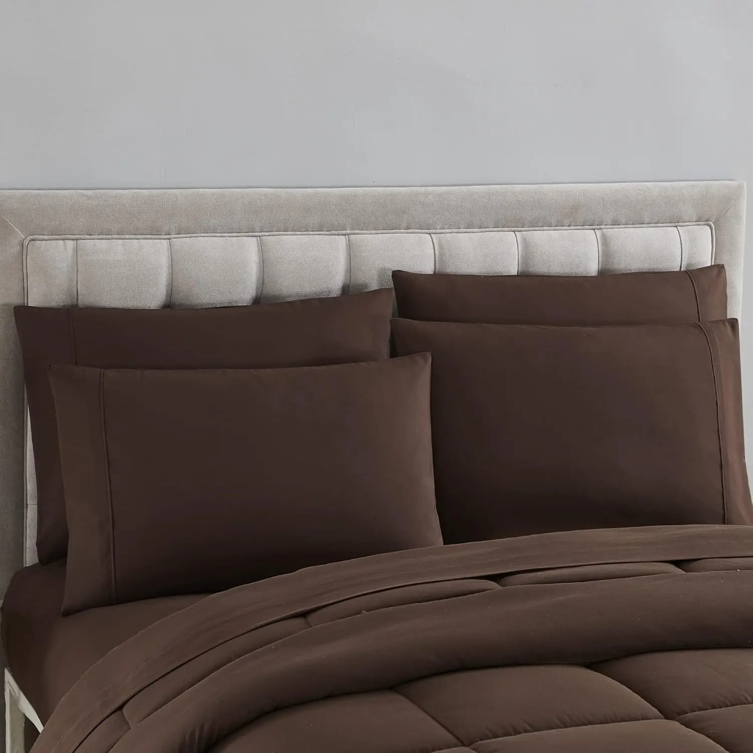 7 Piece Comforter Set Bag Solid Color All Season Soft Down Alternative Blanket & Luxurious Microfiber Bed Sheets, Brown, King