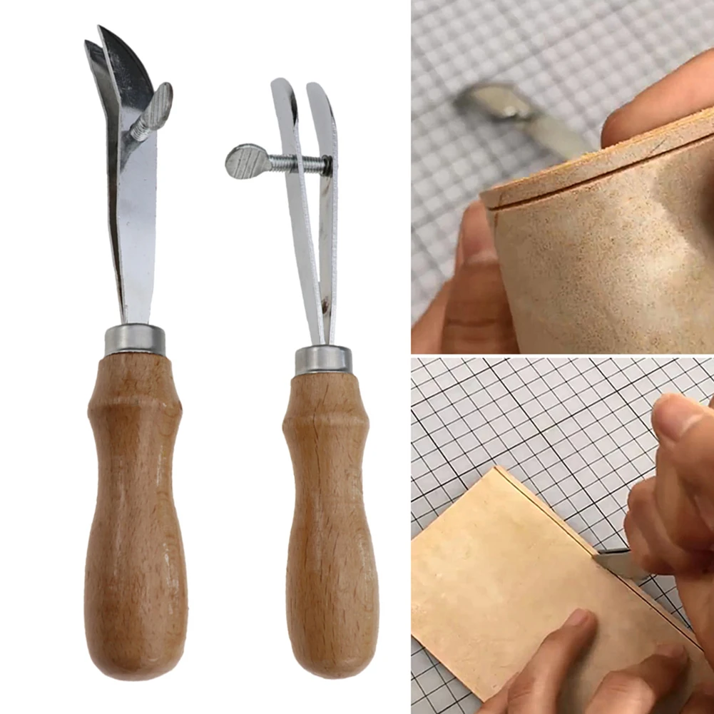Adjustable Leather Edge Creaser Scriber Crimping Scalloped Crimper Wood Press Line Craft Tool For DIY Handmade Stitching Groover