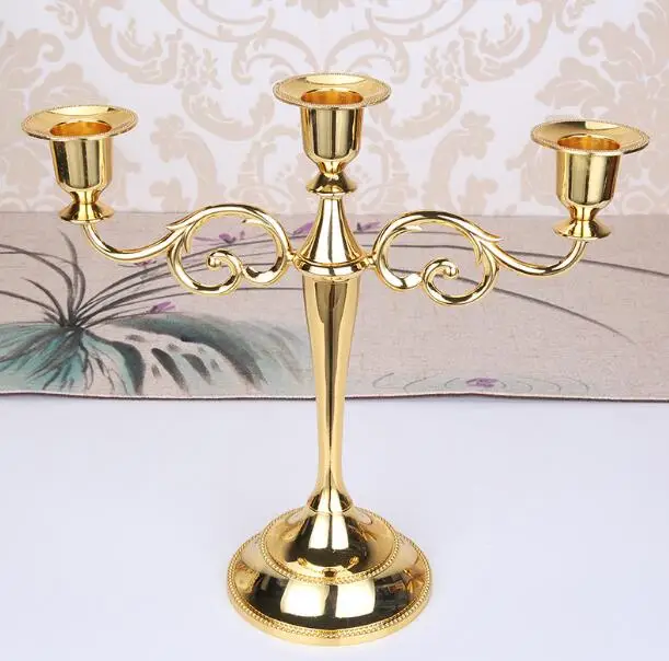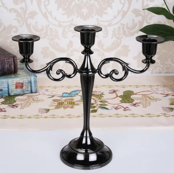 Silver Gold Black Bronze Metal Candlestick Holder Retro 3-Arm Dinner Wedding Home Decor