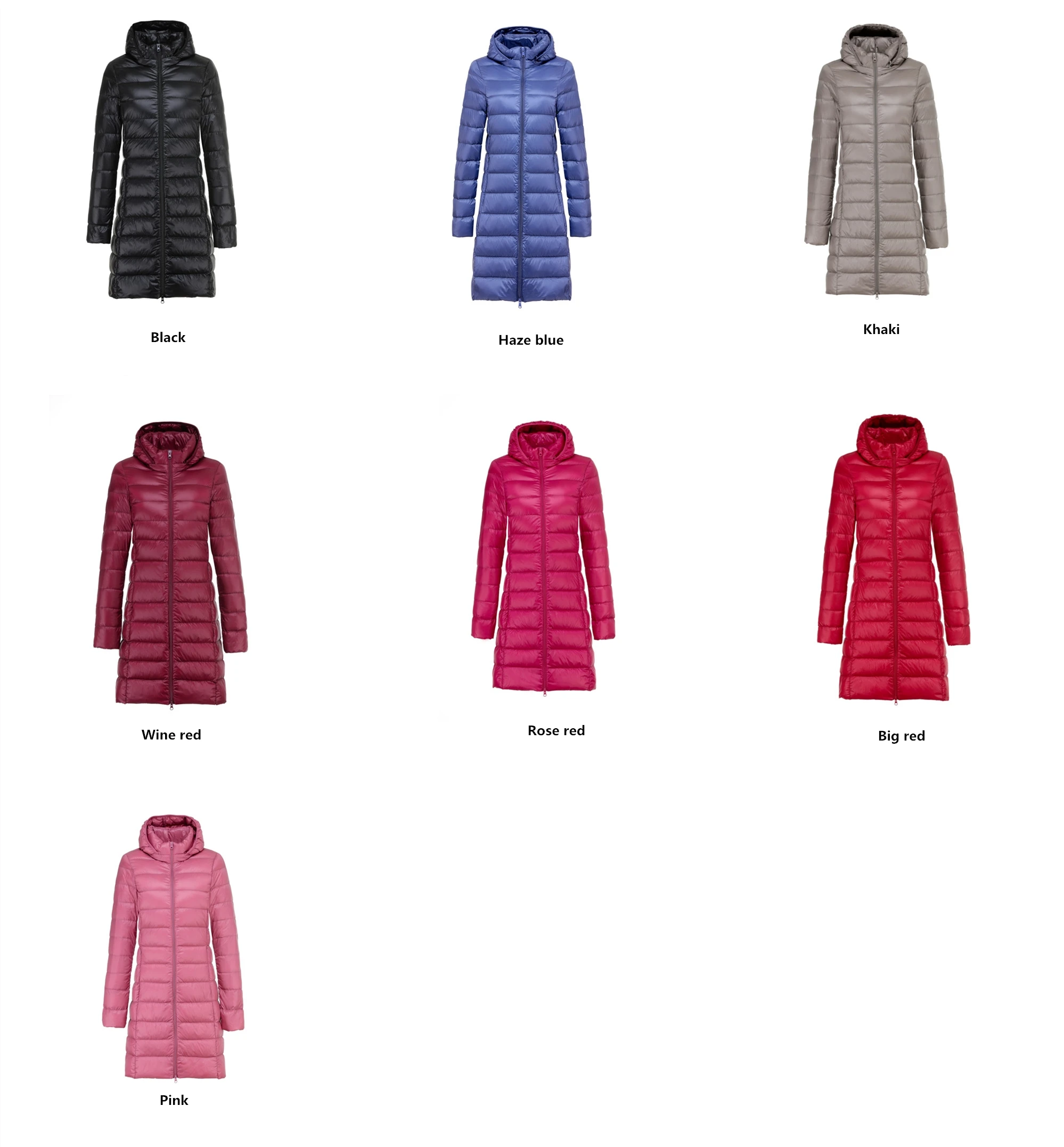 Women Winter Down Jacket 6 Colors Plus Size 5XL 6XL 7XL Women Long Slim Fit Hooded Warm Ultra Lightweight Packable Puffer Jacket